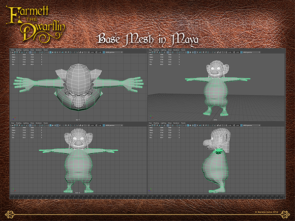 …then creating a model sheet which provided a visualisation of the intended character in orthographic views to be taken into Maya for referencing to create a base mesh.