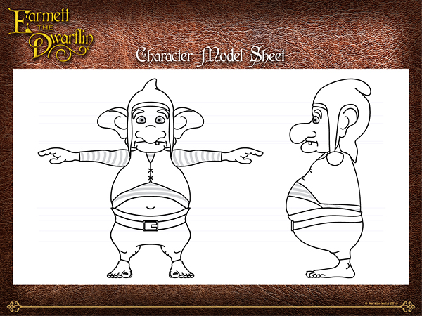 Work included creating a model sheet which provided a visualisation of the intended character, which included a personality pose (colour) and orthographic views of front and sides which were taken into Maya for model referencing.